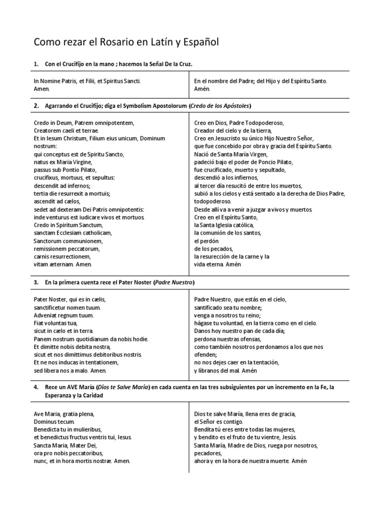 Como Rezar El Rosario En Latin Y Espanol Pdf Pdf Maria Madre De Jesus Orador Del Senor
